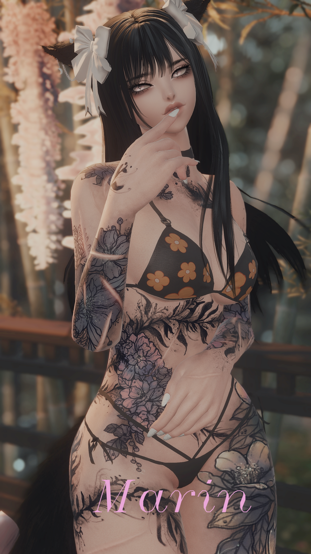 After suffering with straps, Marin is finished! This is not a dyeable ttmp, however you can change things in the colorset! Row 16 for the bottoms and the top as well. It was suppose to be released last month, but things happened. But, I hope everyone has fun using this little piece.